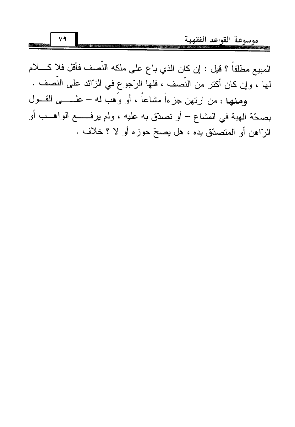 المبيع مطلقاً؟ قيل: إن كان الذي باع على ملكه النّصف فأقل فلا كلام لها، وإن كان أكثر من النّصف، فلها الرّجوع في الزّائد على النّصف.