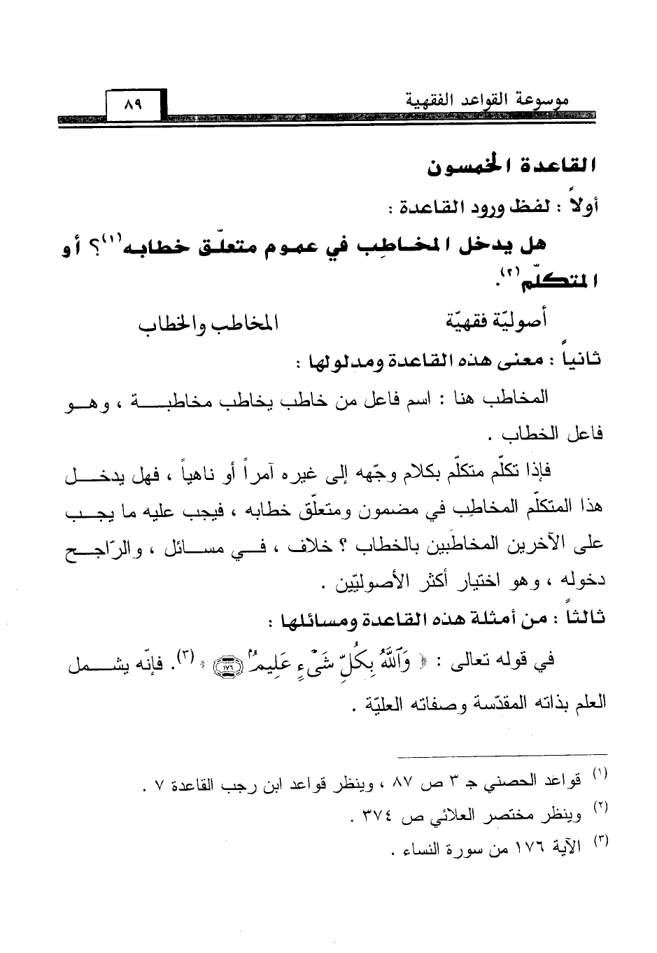 (¬1) قواعد الحصني جـ 3 ص 87، وينظر قواعد ابن رجب القاعدة 7.