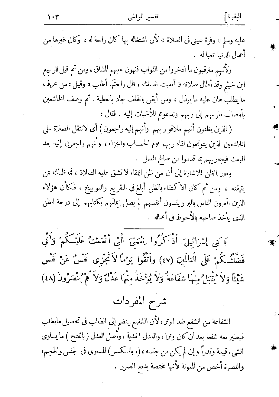 (وَأَقِيمُوا الصَّلاةَ وَآتُوا الزَّكاةَ وَارْكَعُوا مَعَ الرَّاكِعِينَ) تقدم أن قلنا إن في الصلاة إظهار الحاجة إلى المعبود، والافتقار إليه بالقول أو بالفعل أو بكليهما، وإقامتها هى التوجه إلى الله بقلب خاشع والإخلاص له في الدعاء، وهذا هو روح الصلاة الذي شرعت لأجله، أما الصورة فليست مقصودة لذاتها، ومن ثم اختلفت في الشرائع بحسب الأديان والأزمان، ولكن الروح لا تغيير فيه ولا تبديل باختلاف الأنبياء.