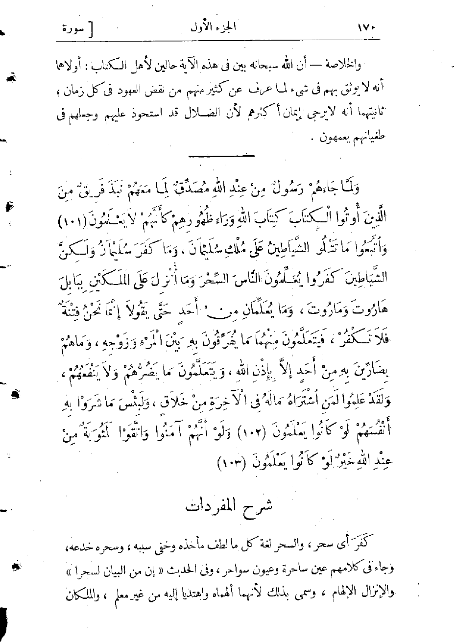البينات: هى الآيات والدلائل التي تدل على صدق النبي والمعجزات التي تؤيد نبوّته كالعصا واليد، العجل: هو الذي صنعه لهم السامرىّ من حليّهم وجعلوه إلها وعبدوه، وأشرب قلبه كذا: أي حلّ محل الشراب كأن الشيء المحبوب شراب يساغ فهو يسرى فى قلب المحبّ ويمازجه كما يسرى الشراب العذب البارد في اللهات، وحقيقة أشربه كذا: جعله شاربا له، والمراد من الدار الآخرة ثوابها ونعيمها، خالصة: أي خاصة بكم، تمنوا الموت: أي تشوفوا له واجعلوا نفوسكم ترتاح إليه وتود المصير إليه، بمزحزحه أي بمنجيه من العذاب، والبصير العالم بكنه الشيء الخبير به.