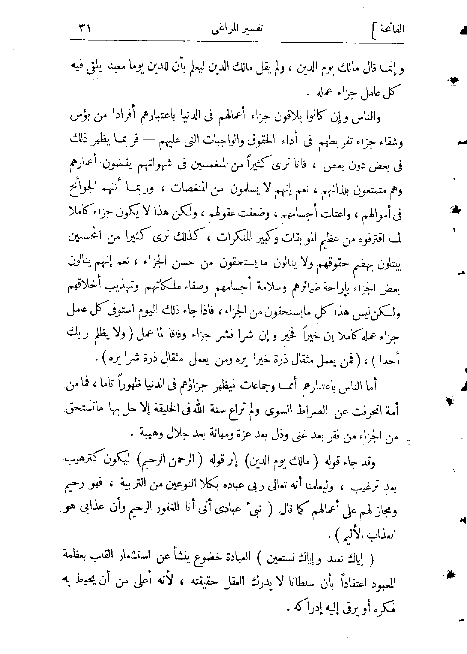 (مالِكِ يَوْمِ الدِّينِ) قرأ بعض القرّاء مالك، وبعض آخر ملك، والفارق بينهما أن المالك هو ذو الملك (بكسر الميم) والملك هو ذو الملك (بضم الميم) وقد جاء فى الكتاب الكريم ما يعاضد كلّا من القراءتين، فيعاضد الأولى قوله: (يَوْمَ لا تَمْلِكُ نَفْسٌ لِنَفْسٍ شَيْئاً) ويعاضد الثانية قوله: (لِمَنِ الْمُلْكُ الْيَوْمَ) .