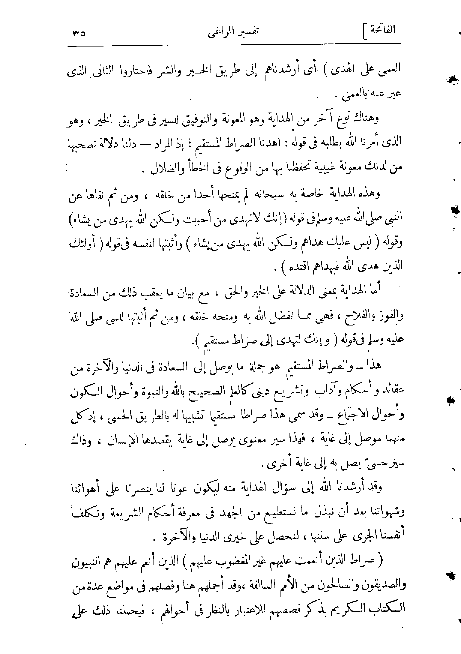 (اهْدِنَا الصِّراطَ الْمُسْتَقِيمَ) الهداية هى الدلالة على ما يوصل إلى المطلوب، والصراط هو الطريق، والمستقيم ضد المعوجّ، وهو ما فيه انحراف عن الغاية التي يجب على سالكها أن ينتهى إليها.