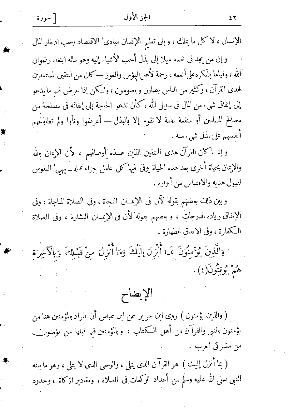 (الَّذِينَ هُمْ عَلى صَلاتِهِمْ دائِمُونَ) وبأدائها فى أوقاتها بقوله: (إِنَّ الصَّلاةَ كانَتْ عَلَى الْمُؤْمِنِينَ كِتاباً مَوْقُوتاً) وبأدائها فى جماعة بقوله: (وَارْكَعُوا مَعَ الرَّاكِعِينَ) وبالخشوع فيها بقوله: (الَّذِينَ هُمْ فِي صَلاتِهِمْ خاشِعُونَ) .