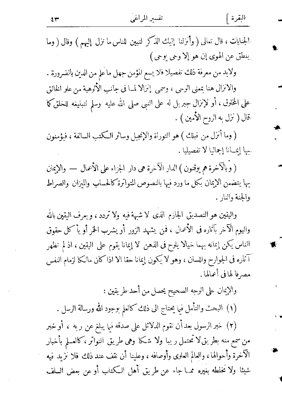 وإنما كان القرآن هدى للمتقين الذين هذه أوصافهم، لأن الإيمان بالله والإيمان بحياة أخرى بعد هذه الحياة يوفّى فيها كل عامل جزاء عمله- يهيّئ النفوس لقبول هديه والاقتباس من أنواره.