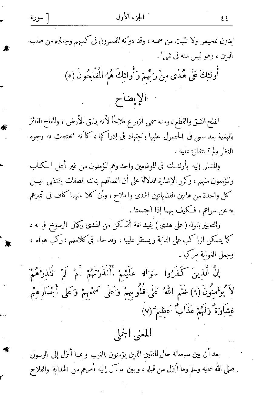 واليقين: هو التصديق الجازم الذي لا شبهة فيه ولا تردد، ويعرف اليقين بالله واليوم الآخر بآثاره فى الأعمال، فمن يشهد الزور أو يشرب الخمر أو يأكل حقوق الناس يكن إيمانه بهما خيالا يلوح فى الذهن لا إيمانا يقوم على اليقين، إذ لم تظهر آثاره فى الجوارح واللسان، وهو لا يكون إيمانا حقا إلا إذا كان مالكا لزمام النفس مصرفا لها فى أعمالها.