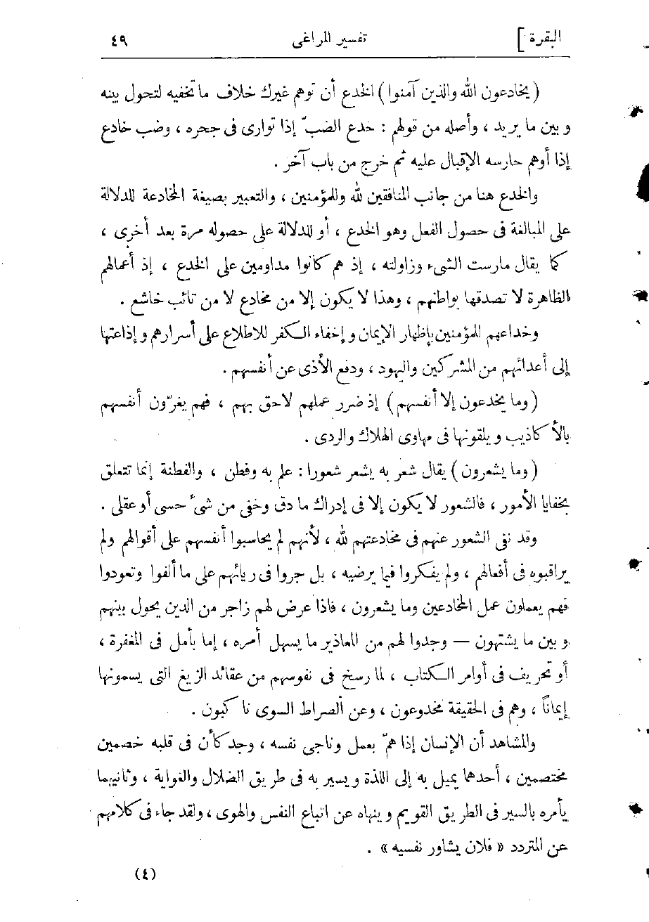 فنعى عليهم خبثهم في قوله: ومن الناس من يقول آمنا بالله وباليوم الآخر، ونفى عليهم مكرهم في قوله: يخادعون الله والذين آمنوا: وفضجهم في قوله: وما هم بمؤمنين، وفي قوله. وما يخدعون إلا أنفسهم، وفي قوله: في قلوبهم مرض، واستجهلهم في قوله: