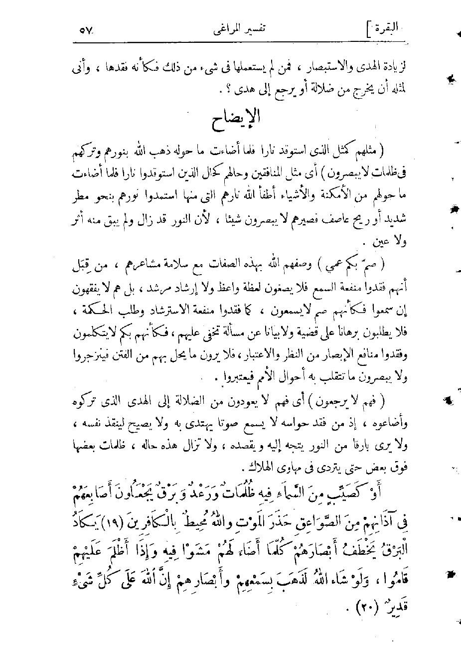 مَثَلُهُمْ كَمَثَلِ الَّذِي اسْتَوْقَدَ ناراً فَلَمَّا أَضاءَتْ ما حَوْلَهُ ذَهَبَ اللَّهُ بِنُورِهِمْ وَتَرَكَهُمْ فِي ظُلُماتٍ لا يُبْصِرُونَ (17) صُمٌّ بُكْمٌ عُمْيٌ فَهُمْ لا يَرْجِعُونَ (18)