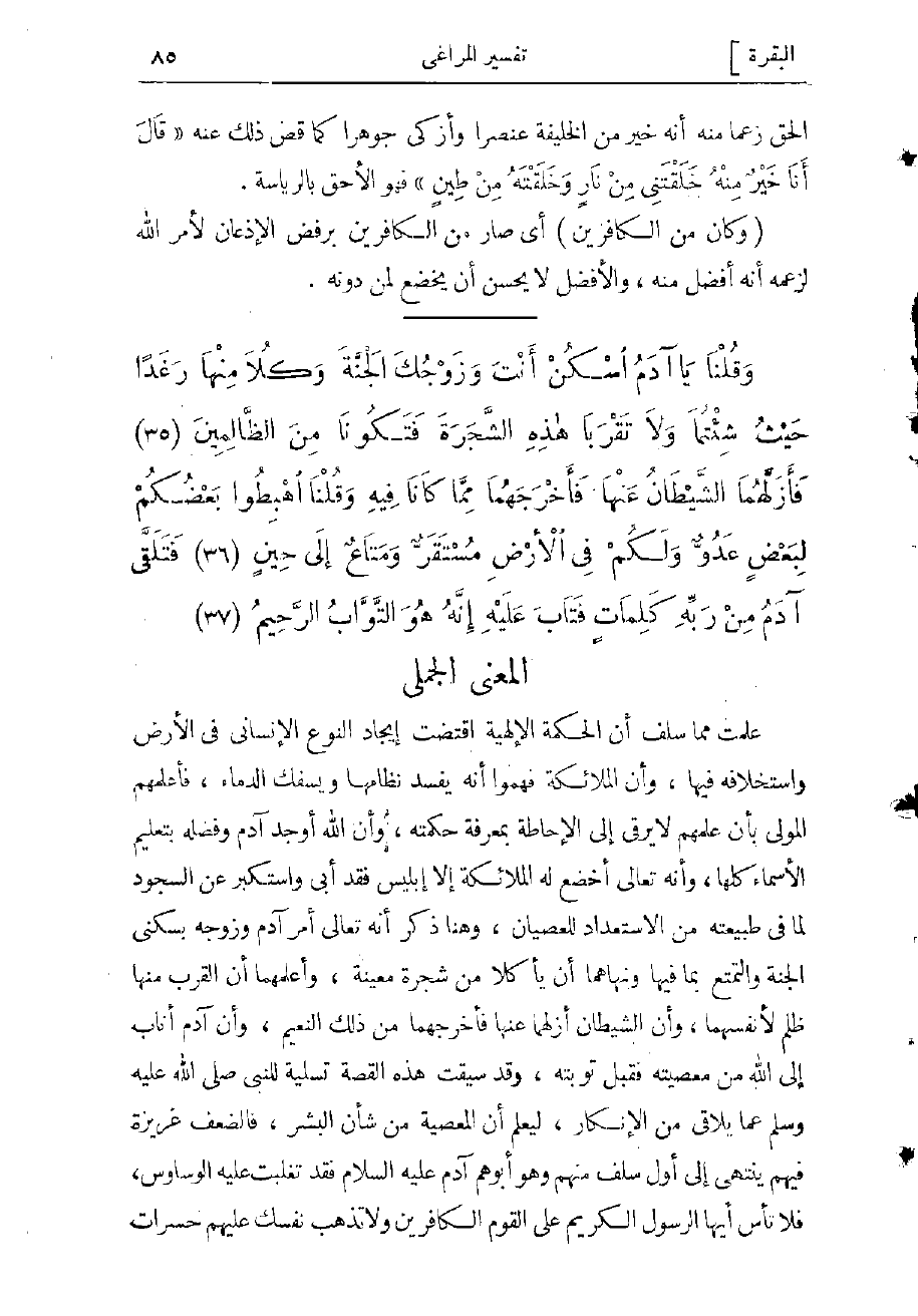 (وَإِذْ قُلْنا لِلْمَلائِكَةِ اسْجُدُوا لِآدَمَ) السجود لغة الخضوع والانقياد، ومن أعظم مظاهره وضع الجبهة على التراب، وكان تحية للملوك عند بعض القدماء كما ورد من سجود يعقوب وأولاده ليوسف.