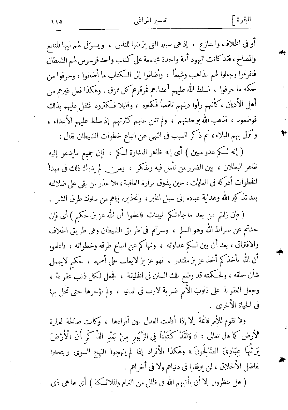 ولا تقوم للأمم قائمة إلا إذا أقامت العدل بين أفرادها، وكانت صالحة لعمارة الأرض كما قال تعالى: «وَلَقَدْ كَتَبْنا فِي الزَّبُورِ مِنْ بَعْدِ الذِّكْرِ أَنَّ الْأَرْضَ يَرِثُها عِبادِيَ الصَّالِحُونَ» وهكذا الأفراد إذا لم ينهجوا النهج السوىّ ويتحلّوا بفاضل الأخلاق، فلن يوفّقوا في دنياهم ولا في أخراهم.