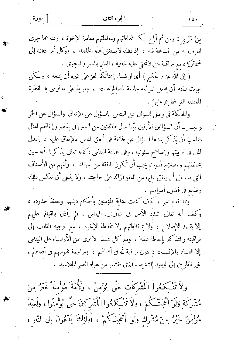 ومما تقدم تعلم، كيف كانت عناية المؤمنين بأحكام دينهم وحفظ حدوده، وكيف شدد سبحانه في الأمر بشأن اليتامى، فلم يأذن في القيام عليهم إلا بقصد الإصلاح ولا بمخالطتهم إلا مخالطة الإخوة، مع توجيه القلوب إلى مراقبته، والتذكير بإحاطة علمه، ومع كل هذا لا نرى من الأوصياء على اليتامى إلا الفساد والإفساد، دون مراقبة لله في أعمالهم، ومراجعة نفوسهم في أفعالهم، غير ناظرين إلى الوعيد الشديد الذي تقشعر من هوله الصمّ الجلاميد.