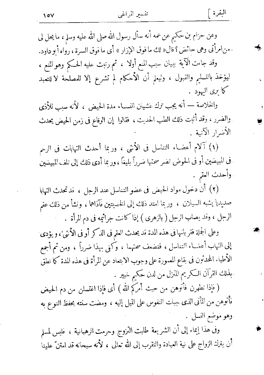 وعلى الجملة فقربانها في هذه المدة قد يحدث العقم في الذكر أو في الأنثى، ويؤدى إلى التهاب أعضاء التناسل فتضعف صحتها، وكفى بهذا ضررا، ومن ثمّ أجمع الأطباء المحدثون في بقاع المعمورة على وجوب الابتعاد عن المرأة في هذه المدة كما نطق بذلك القرآن الكريم المنزل من لدن حكيم خبير.
