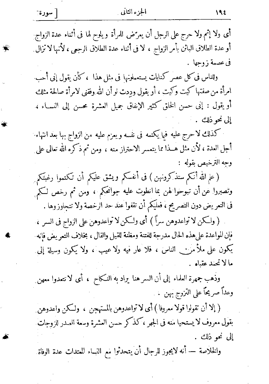 وذهب جمهرة العلماء إلى أن السر هنا يراد به النكاح، أي لا تتّعدوا معهن وعدا صريحا على التزوّج بهن.
