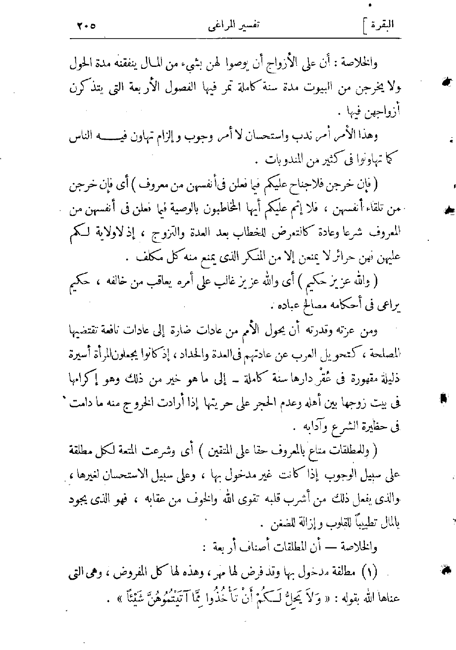 (1) مطلقة مدخول بها وقد فرض لها مهر، وهذه لها كل المفروض، وهى التي عناها الله سبحانه بقوله: «وَلا يَحِلُّ لَكُمْ أَنْ تَأْخُذُوا مِمَّا آتَيْتُمُوهُنَّ شَيْئاً» .