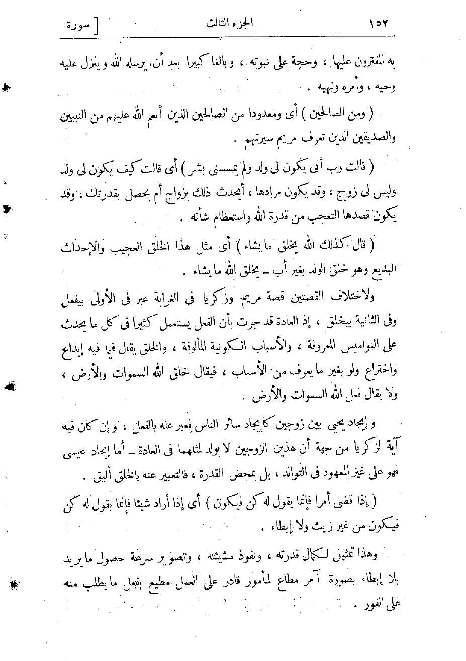 الفضل والذين، ولم يكن ذلك إلا لشدة رغبتهم في القيام بشأنها وكفاية مهامها، إما لأن عمران كان رئيسا لهم فأرادوا مكافأته قياما ببعض ما يجب له من الحقوق، وإما لأنهم وجدوا في بعض كتب الدين أنه سيكون لها ولابنها شأن عظيم، وإما لأنهم رأوا في ذلك القيام بواجب دينى إذ كانت محررة لخدمة بيت العبادة.