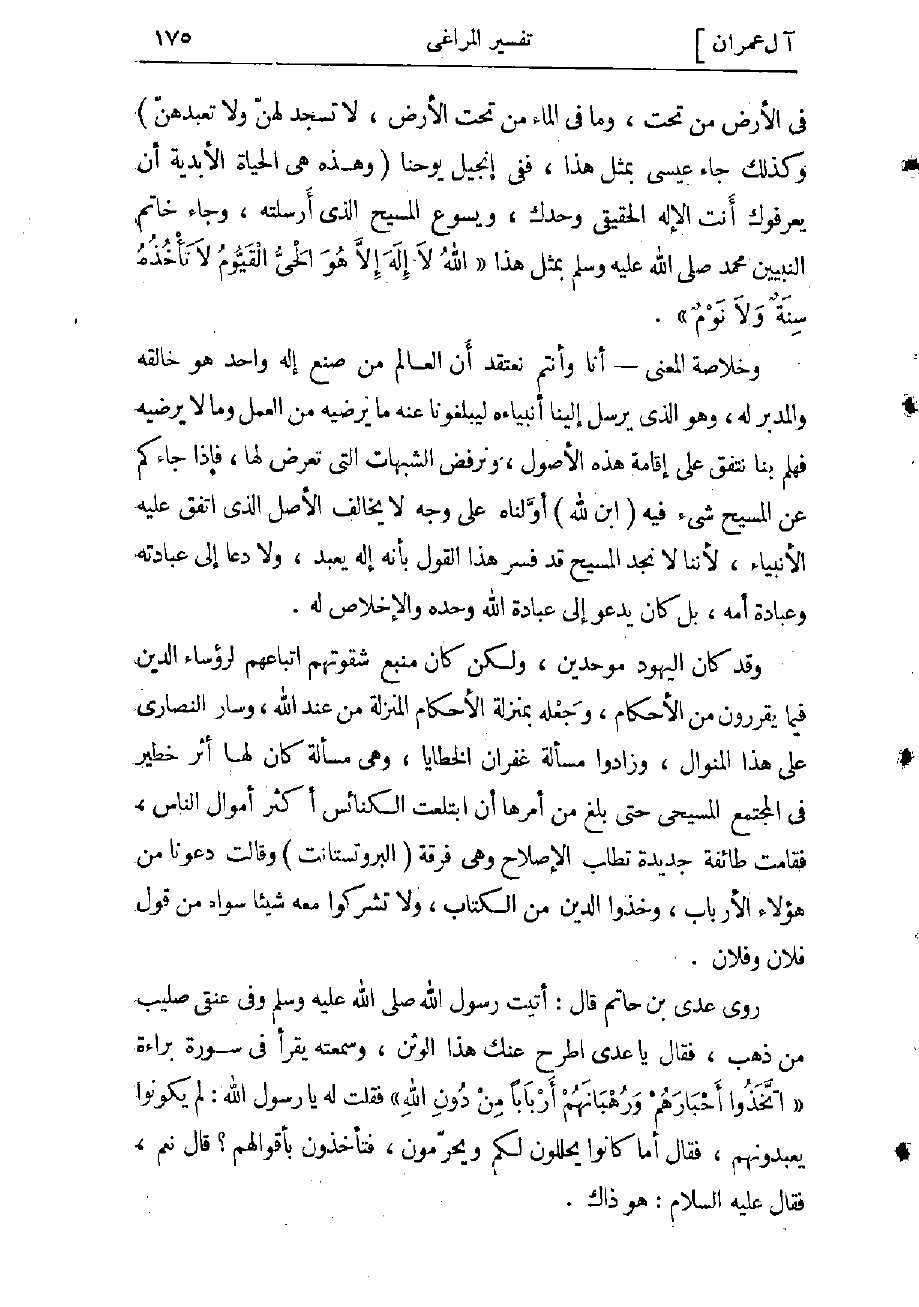 وأخرج أبو نعيم في الدلائل عن ابن عباس «أن ثمانية من نصارى نجران قدموا على رسول الله صلى الله عليه وسلم منهم العاقب والسيد فأنزل الله (قل تعالوا) الآية فقالوا أخرنا ثلاثة أيام، فذهبوا إلى قريظة والنضير وبنى قينقاع من اليهود فأشاروا عليهم أن يصالحوه ولا يلاعنوه، وقالوا هو النبي الذي نجده في التوراة، فصالحوه على ألف حلة فى صفر وألف في رجب ودراهم» .