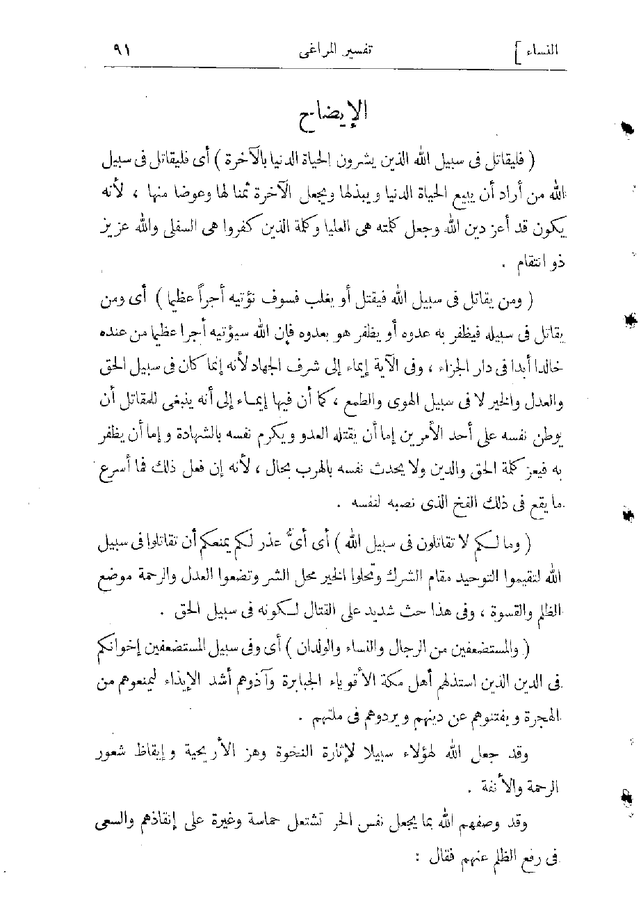 وفى الآية إيماء إلى شرف الجهاد، لأنه إنما كان فى سبيل الحق والعدل والخير لا فى سبيل الهوى والطمع، كما أن فيها إيماء إلى أنه ينبغى للمقاتل أن يوطن نفسه على أحد الأمرين: إما أن يقتله العدو ويكرم نفسه بالشهادة، وإما أن يظفر به فيعزّ كلمة الحق والدين، ولا يحدّث نفسه بالهرب بحال، لأنه إن فعل ذلك فما أسرع ما يقع فى ذلك الفخّ الذي نصبه لنفسه.