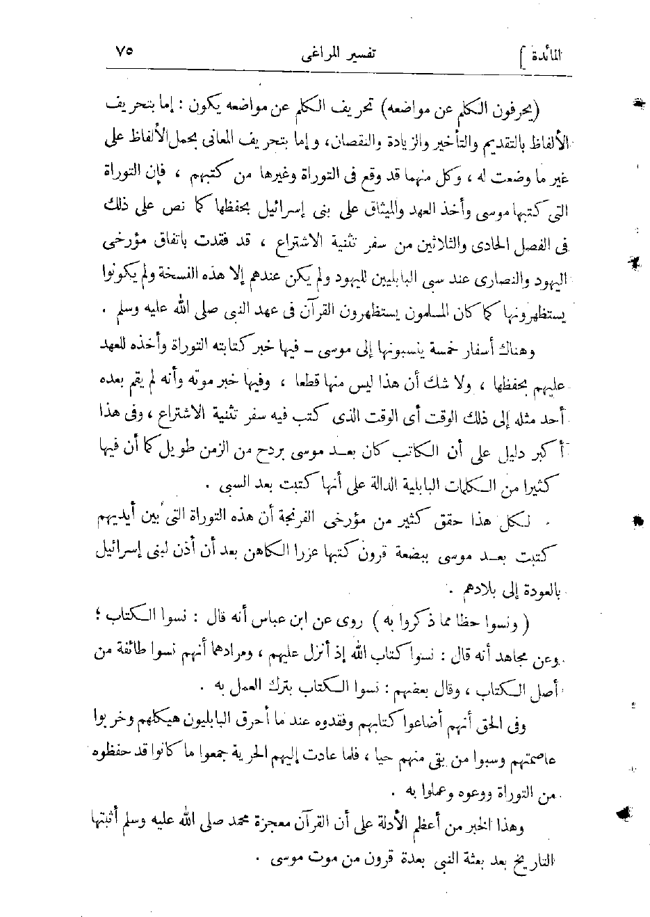 (يُحَرِّفُونَ الْكَلِمَ عَنْ مَواضِعِهِ) تحريف الكلم عن مواضعه يكون: إما بتحريف الألفاظ بالتقديم والتأخير والزيادة والنقصان، وإما بتحريف المعاني بحمل الألفاظ على غير ما وضعت له، وكل منهما قد وقع فى التوراة وغيرها من كتبهم، فإن التوراة التي كتبها موسى، وأخذ العهد والميثاق على بنى إسرائيل بحفظها كما نص على ذلك فى الفصل الحادي والثلاثين من سفر تثنية الاشتراع، قد فقدت باتفاق مؤرخى اليهود والنصارى عند سبى البابليين لليهود ولم يكن عندهم إلا هذه النسخة ولم يكونوا يستظهرونها، كما كان المسلمون يستظهرون القرآن فى عهد النبي صلى الله عليه وسلم.