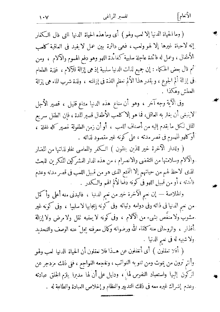 (وَلَلدَّارُ الْآخِرَةُ خَيْرٌ لِلَّذِينَ يَتَّقُونَ) الكفر والمعاصي، لخلو لذاتها من المضار والآلام وسلامتها من التقضي والانصرام، من هذه الدار للمشركين المنكرين للبعث الذين لا حظ لهم من حياتهم إلا التمتع الذي هو من قبيل اللعب فى قصر مدته وعدم فائدته، أو من قبيل اللهو فى كونه دفعا لألم الهم والكدر.