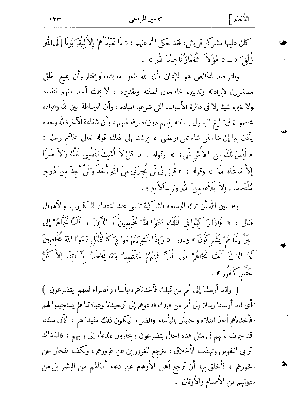 والتوحيد الخالص هو الإيمان بأن الله يفعل ما يشاء ويختار، وأن جميع الخلق مسخرون لإرادته وتدبيره، خاضعون لسننه وتقديره، لا يملك أحد منهم لنفسه ولا لغيره شيئا إلا فى دائرة الأسباب التي شرعها لعباده، وأن الوساطة بينه وبين عباده محصورة فى تبليغ الرسول رسالته إليهم دون تصرفه فيهم وأن شفاعة الآخرة لله وحده يأذن بها إن شاء لمن شاء ممن ارتضى، يرشد إلى ذلك قوله تعالى لخاتم رسله: «لَيْسَ لَكَ مِنَ الْأَمْرِ شَيْءٌ» وقوله: «قُلْ لا أَمْلِكُ لِنَفْسِي نَفْعاً وَلا ضَرًّا إِلَّا ما شاءَ اللَّهُ» وقوله: