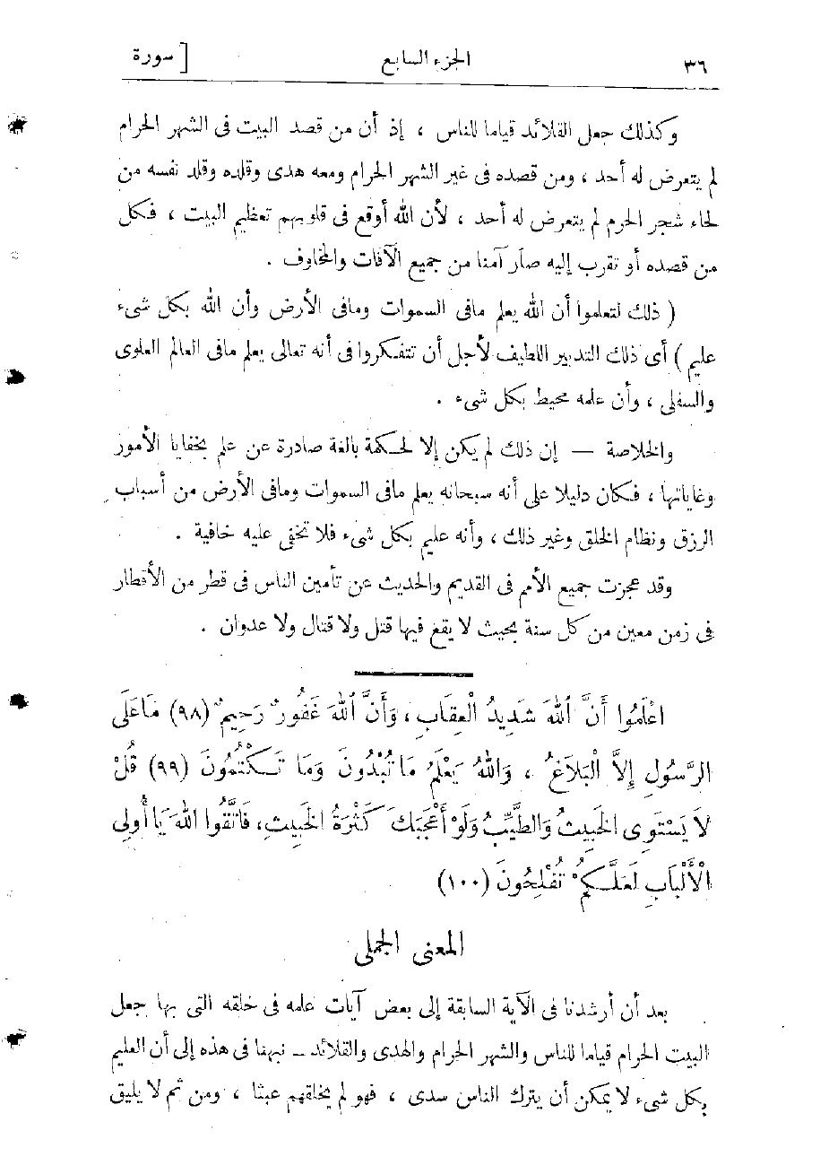 اعْلَمُوا أَنَّ اللَّهَ شَدِيدُ الْعِقابِ وَأَنَّ اللَّهَ غَفُورٌ رَحِيمٌ (98) ما عَلَى الرَّسُولِ إِلاَّ الْبَلاغُ وَاللَّهُ يَعْلَمُ ما تُبْدُونَ وَما تَكْتُمُونَ (99) قُلْ لا يَسْتَوِي الْخَبِيثُ وَالطَّيِّبُ وَلَوْ أَعْجَبَكَ كَثْرَةُ الْخَبِيثِ فَاتَّقُوا اللَّهَ يا أُولِي الْأَلْبابِ لَعَلَّكُمْ تُفْلِحُونَ (100)
