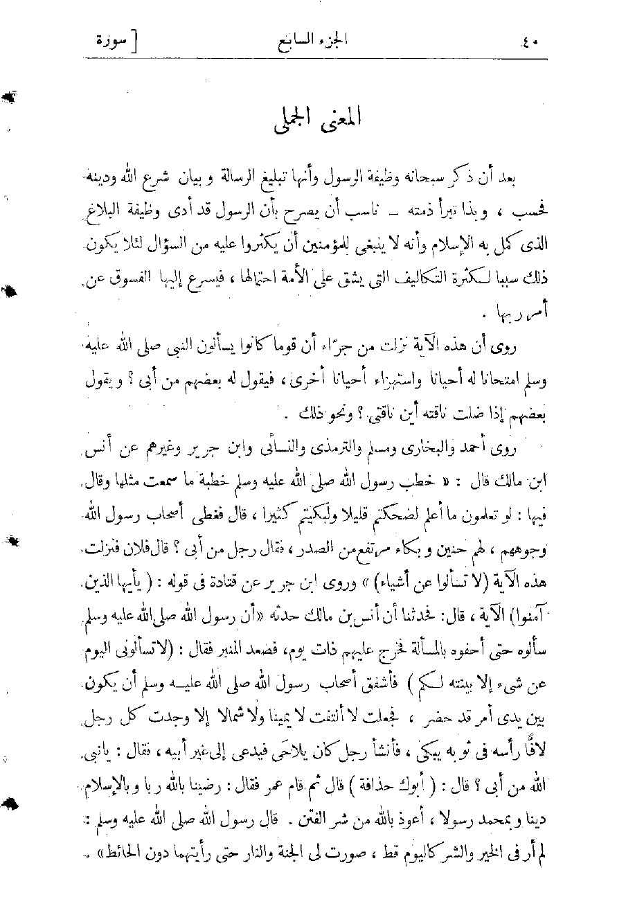 (لا تَسْئَلُوا عَنْ أَشْياءَ) »