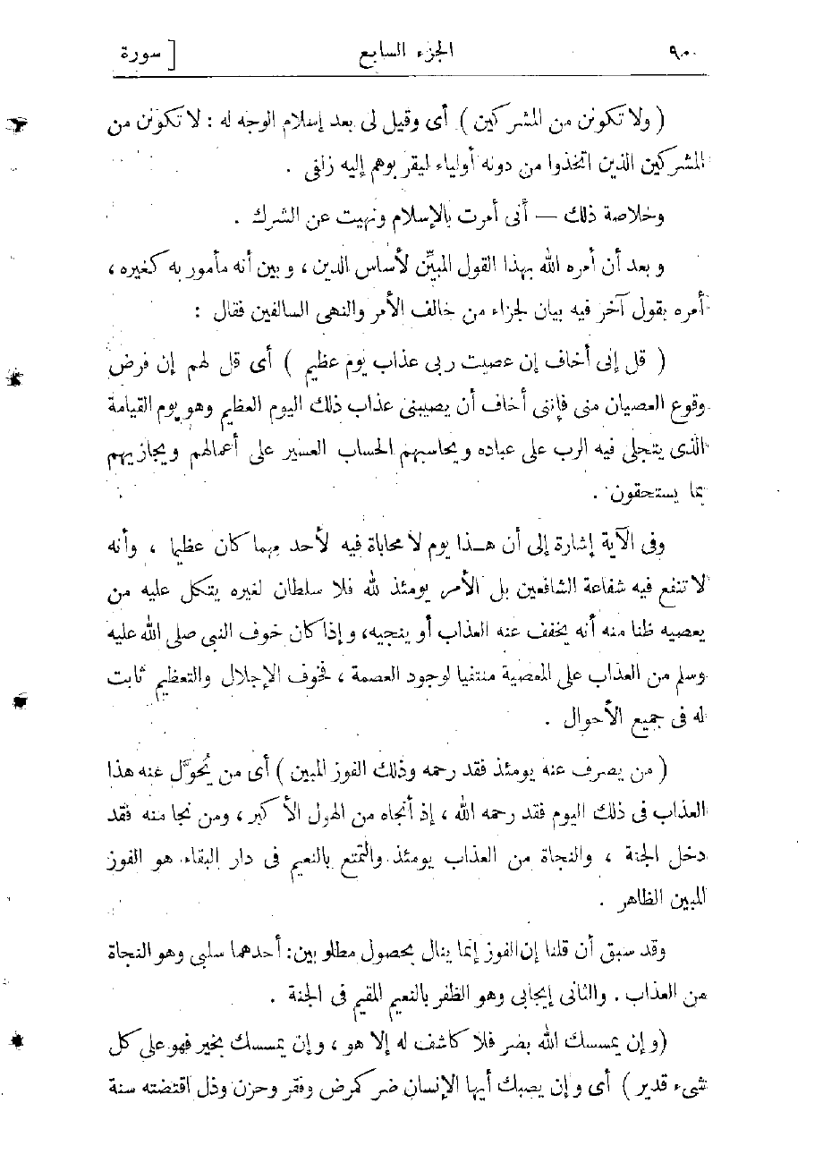 وبعد أن أمره بهذا القول المبيّن لأساس الدين، وبين أنه مأمور به كغيره أمره بقول آخر فيه بيان لجزاء من خالف الأمر والنهى السالفين فقال: