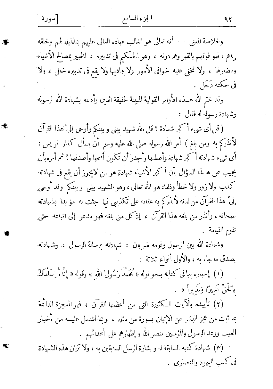 (3) شهادة كتبه السابقة له، وبشارة الرسل السابقين به، ولا نزال هذه الشهادة فى كتب اليهود والنصارى