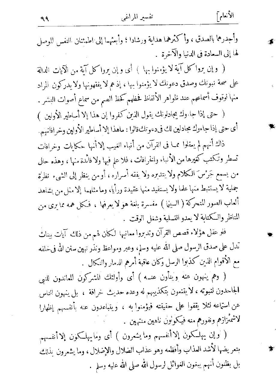 ذاك أنهم لم يعقلوا مما فى القرآن من أنباء الغيب إلا أنها حكايات وخرافات تسطّر وتكتب كغيرها من الأنباء والخرافات، فلا علم فيها ولا فائدة منها، وهذه حال من يسمع جرس الكلام ولا يتدبره ولا يفقه أسراره، أو من ينظر إلى الشيء نظرة جملية لا يستنبط منها علما، ولا يستفيد منها عقيدة ولا رأيا، وما مثلهما إلا مثل من يشاهد ألعاب الصور المتحركة (السينما) مفسرة بلغة هو لا يعرفها، فكل همه مما يرى من المناظر والكتابة لا يعدو التسلية وشغل الوقت.