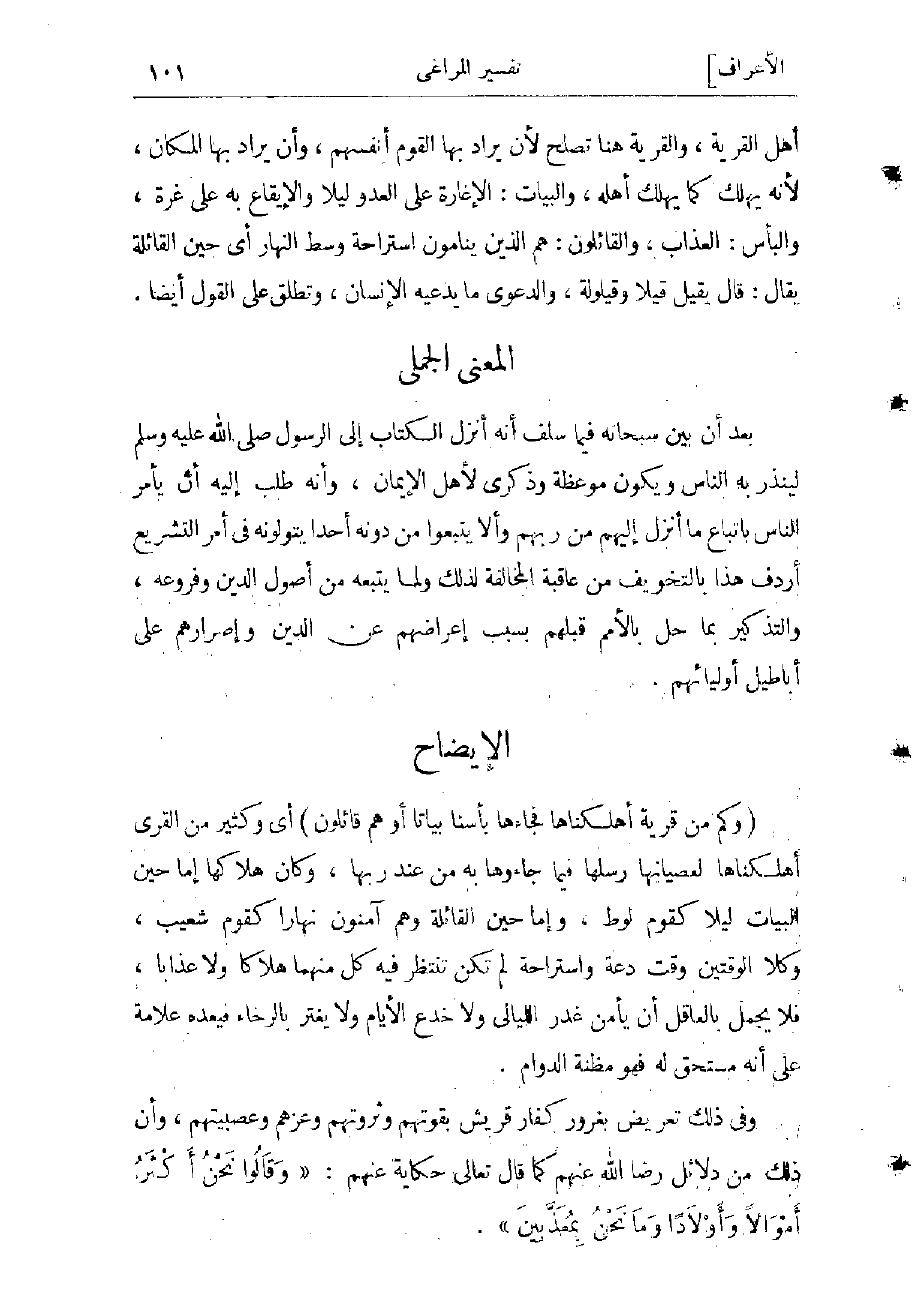 القرية، والقرية هنا تصلح لأن يراد بها القوم أنفسهم، وأن يراد بها المكان لأنه يهلك كما يهلك أهله، والبيات: الإغارة على العدو ليلا والإيقاع به على غرّة، والبأس: العذاب والقائلون: هم الذين ينامون استراحة وسط النهار أي حين القائلة يقال: قال يقيل قيلا وقيلولة، والدعوى: ما يدعيه الإنسان، وتطلق على القول أيضا.