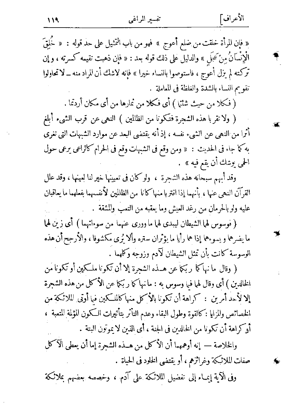 (وَلا تَقْرَبا هذِهِ الشَّجَرَةَ فَتَكُونا مِنَ الظَّالِمِينَ) النهى عن قرب الشيء أبلغ أثرا من النهى عن الشيء نفسه، إذ أنه يقتضى البعد عن موارد الشبهات التي تغرى به كما