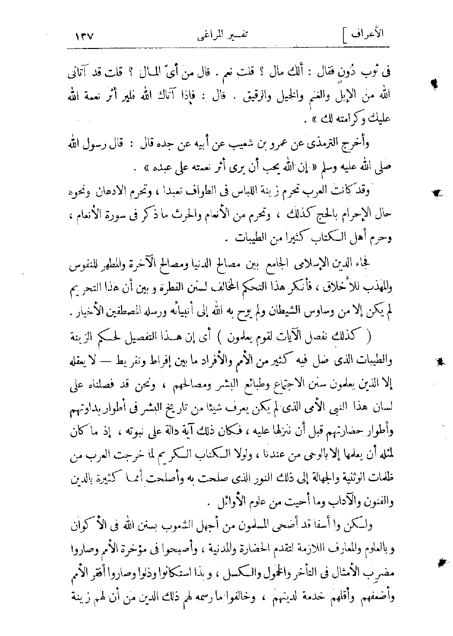 وأخرج الترمذي عن عمرو بن شعيب عن أبيه عن جده قال: قال رسول الله صلى الله عليه وسلم «إن الله يحب أن يرى أثر نعمته على عبده» .