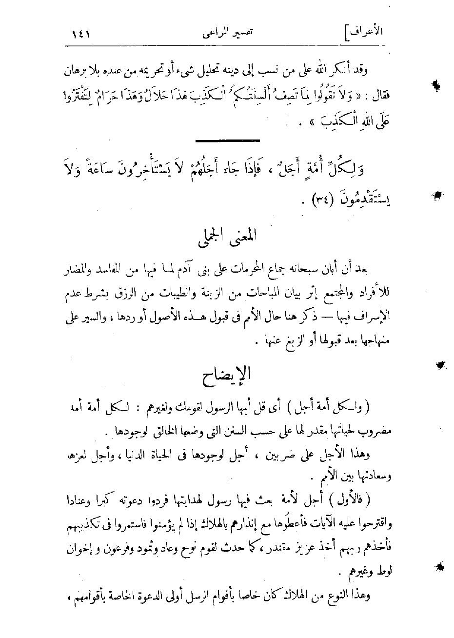 (وَلِكُلِّ أُمَّةٍ أَجَلٌ) أي قل أيها الرسول لقومك ولغيرهم: لكل أمة أمد مضروب لحياتها مقدّر لها بحسب السنن التي وضعها الخالق لوجودها.