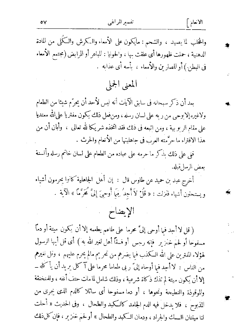 لا يصيد، والمخلب لما يصيد، والشحم: ما يكون على الأمعاء والكرش والكلى من المادة الدهنية، حملت ظهورها أي علقت بها، والحوايا: المباعر أو المرابض (مجتمع الأمعاء فى البطن) أو المصارين والأمعاء، بأسه: أي عذابه.