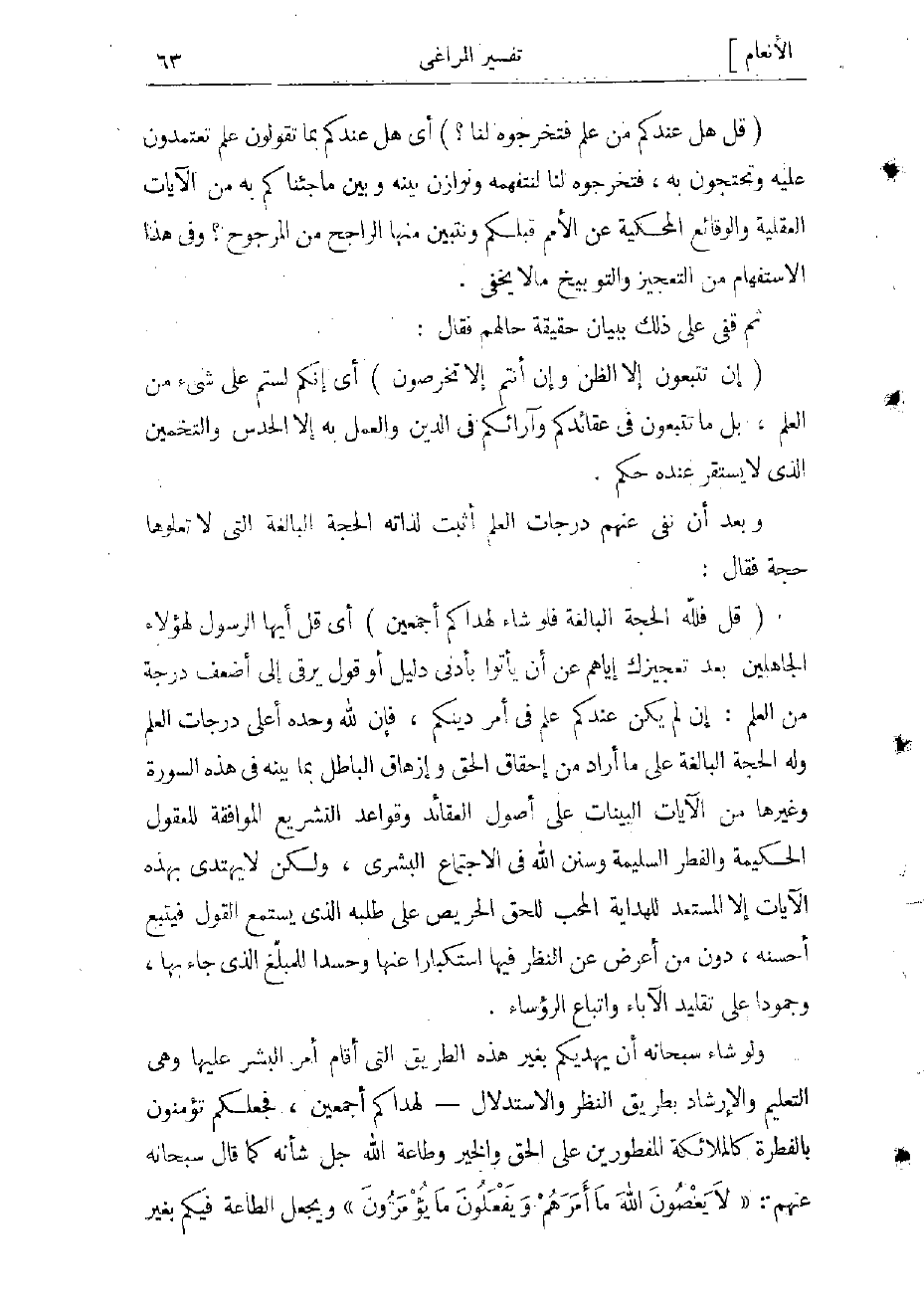 إن لم يكن عندكم علم فى أمر دينكم، فإن لله وحده أعلى درجات العلم وله الحجة البالغة على ما أراد من إحقاق الحق وإزهاق الباطل بما بينه فى هذه السورة وغيرها من الآيات البينات على أصول العقائد وقواعد التشريع الموافقة للعقول الحكيمة والفطر السليمة وسننه فى الاجتماع البشرى، ولكن لا يهتدى بهذه الآيات إلا المستعدّ للهداية، المحب للحق، الحريص على طلبه، الذي يستمع القول فيتبع أحسنه، دون من أعرض عن النظر فيها استكبارا عنها وحسدا للمبلّغ الذي جاء بها، وجمودا على تقليد الآباء واتباع الرؤساء.