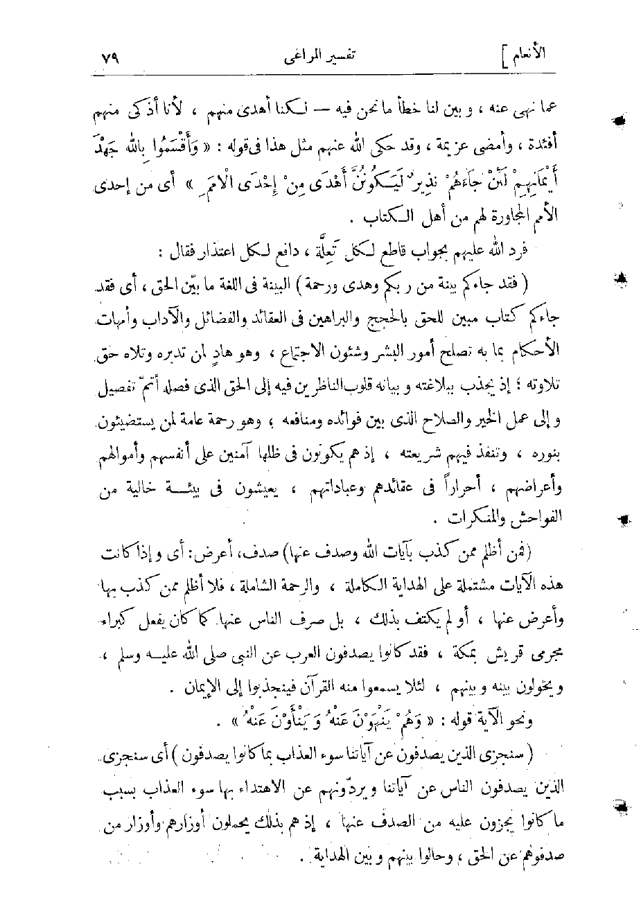 (فَمَنْ أَظْلَمُ مِمَّنْ كَذَّبَ بِآياتِ اللَّهِ وَصَدَفَ عَنْها) صدف، أعرض: أي وإذا كانت هذه الآيات مشتملة على الهداية الكاملة، والرحمة الشاملة، فلا أظلم ممن كذب بها وأعرض عنها، أو لم يكتف بذلك، بل صرف الناس عنها كما كان يفعل كبراء مجرمى قريش بمكة، فقد كانوا يصدفون العرب عن النبي صلى الله عليه وسلم، ويحولون بينه وبينهم، لئلا يسمعوا منه القرآن فينجذبوا إلى الإيمان.