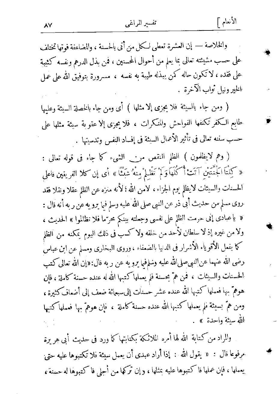وروى البخاري ومسلم عن ابن عباس رضي الله عنهما عن النبي صلى الله عليه وسلم فيما يرويه عن ربه قال: «إن الله تعالى كتب الحسنات والسيئات، فمن همّ بحسنة فلم يعملها كتبها الله له عنده حسنة كاملة، فإن هو همّ بها فعملها كتبها الله عنده عشر حسنات إلى سبعمائة ضعف إلى أضعاف كثيرة. ومن همّ بسيئة فلم يعملها كتبها الله له عنده حسنة كاملة، فإن هو همّ بها فعملها كتبها الله سيئة واحدة» .