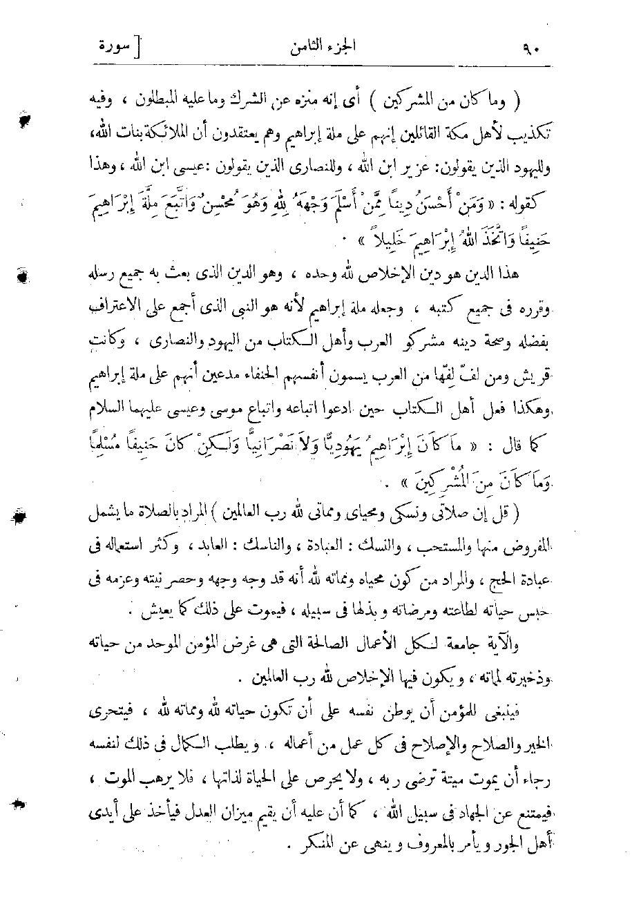 هذا الدين هو دين الإخلاص لله وحده، وهو الدين الذي بعث به جميع رسله وقرره فى جميع كتبه، وجعله ملة إبراهيم لأنه هو النبي الذي أجمع على الاعتراف بفضله وصحة دينه مشركو العرب وأهل الكتاب من اليهود والنصارى، وكانت قريش ومن لفّ لفّها من العرب يسمون أنفسهم الحنفاء مدّعين أنهم على ملة إبراهيم، وهكذا فعل أهل الكتاب حين ادّعوا اتباعه واتباع موسى وعيسى عليهما السلام كما قال: