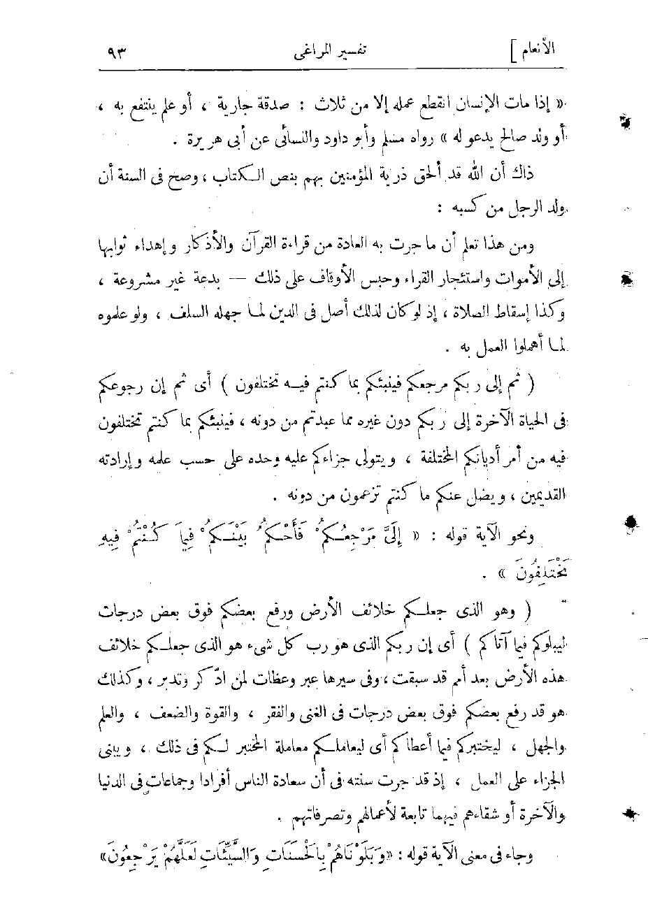الإنسان انقطع عمله إلا من ثلاث: صدقة جارية، أو علم ينتفع به، أو ولد صالح يدعوله» رواه مسلم وأبو داود والنسائي عن أبي هريرة.