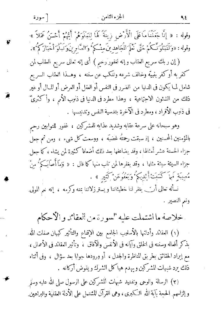 خلاصة ما اشتملت عليه السورة من العقائد والأحكام
