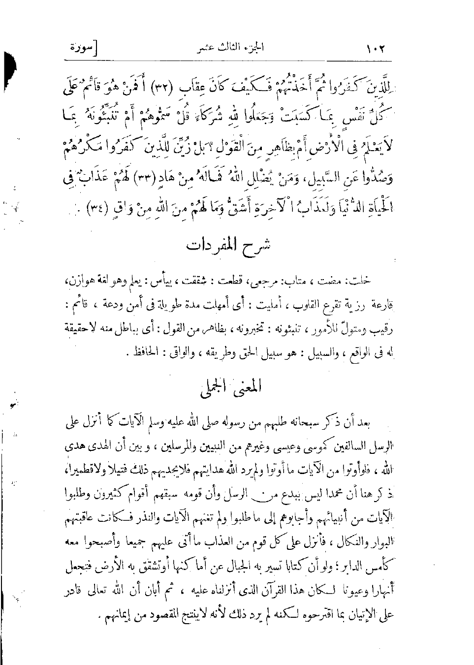 خلت: مضت، متاب: مرجعى، قطعت: شققت، ييأس: يعلم وهو لغة هوازن قارعة رزية تقرع القلوب، أمليت: أي أمهلت مدة طويلة فى أمن ودعة، قائم: