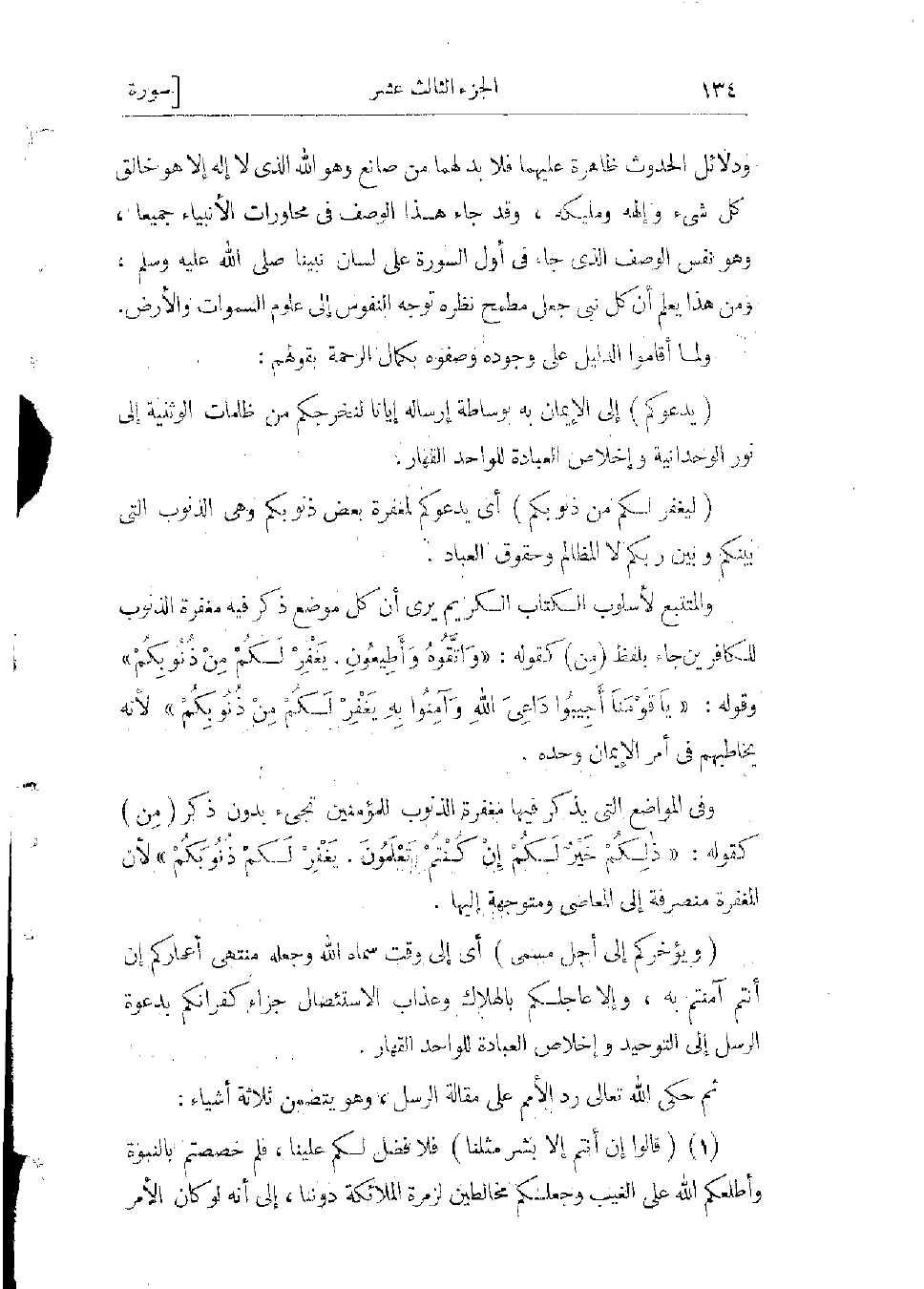 والمتتبع لأسلوب الكتاب الكريم يرى أن كل موضع ذكر فيه مغفرة الذنوب للكافرين جاء بلفظ (من) كقوله: «وَاتَّقُوهُ وَأَطِيعُونِ يَغْفِرْ لَكُمْ مِنْ ذُنُوبِكُمْ» وقوله: «يا قَوْمَنا أَجِيبُوا داعِيَ اللَّهِ وَآمِنُوا بِهِ يَغْفِرْ لَكُمْ مِنْ ذُنُوبِكُمْ» لأنه يخاطبهم فى أمر الإيمان وحده.