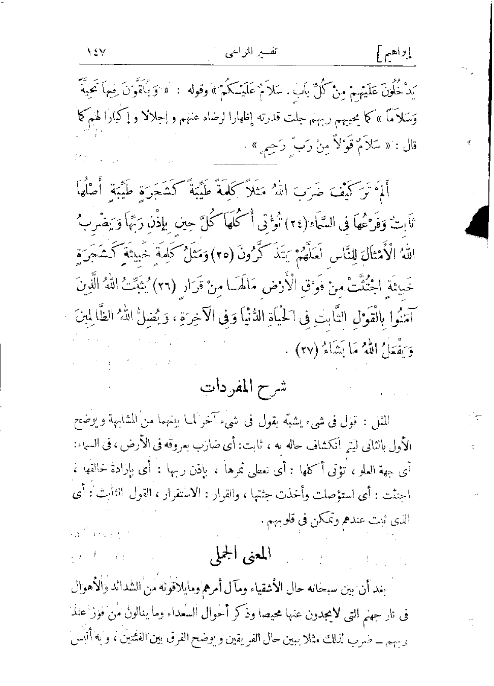 أي جهة العلو، تؤتى أكلها: أي تعطى ثمرها، بإذن ربها: أي بإرادة خالقها، اجتثت: