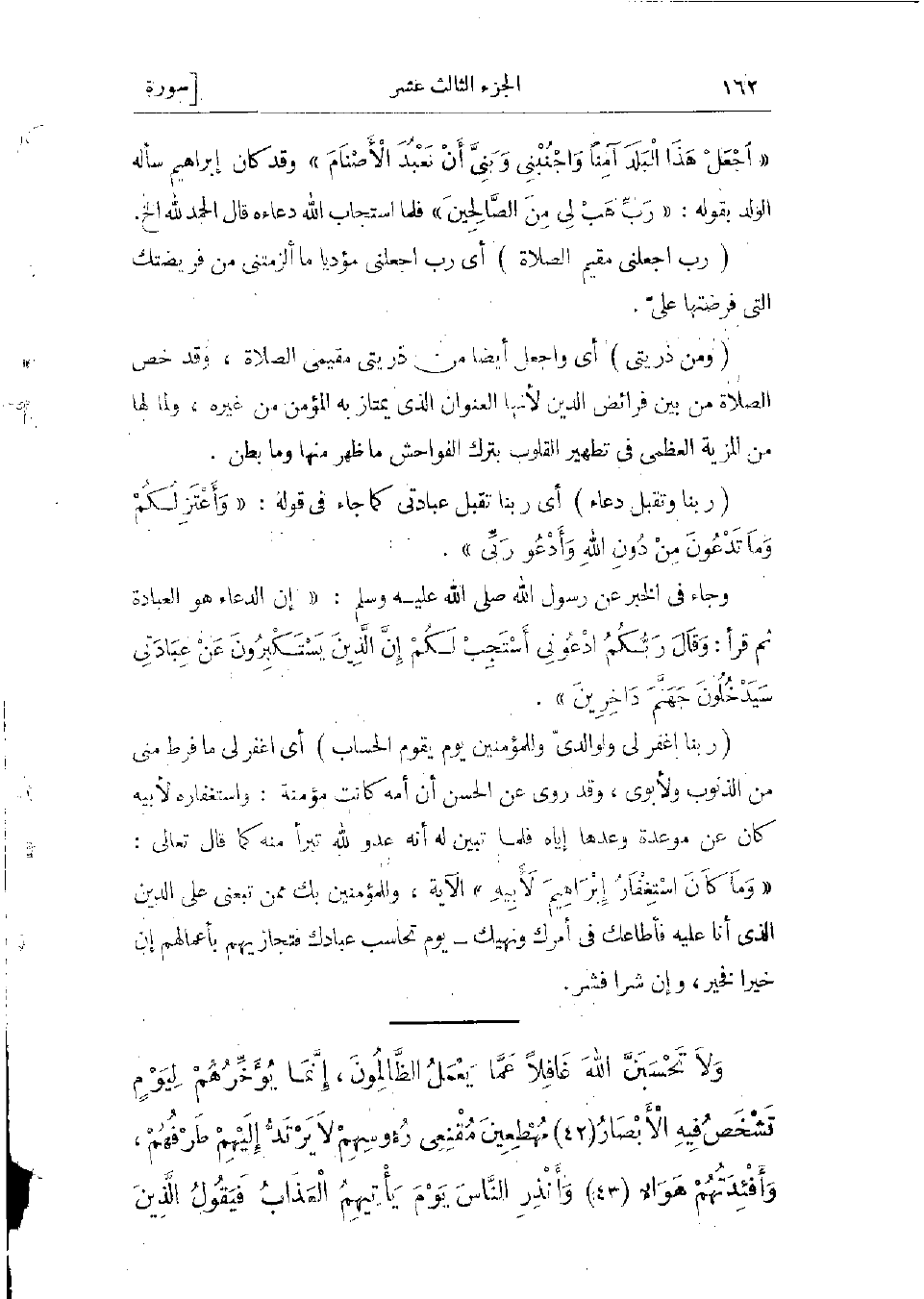 (وَمِنْ ذُرِّيَّتِي) أي واجعل أيضا ذريتى مقيمى الصلاة، وقد خص الصلاة من بين فرائض الدين لأنها العنوان الذي يمتاز به المؤمن من غيره، ولما لها من المزية العظمى فى تطهير القلوب بترك الفواحش ما ظهر منها وما بطن (رَبَّنا وَتَقَبَّلْ دُعاءِ) المراد بالدعاء العبادة أي ربنا تقبل عبادتى كما جاء فى قوله: