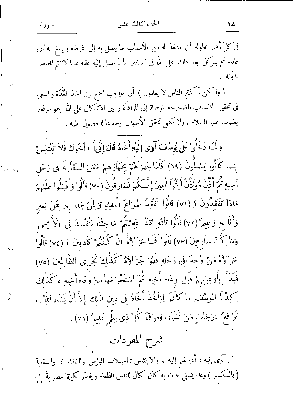 آوى إليه: أي ضم إليه، والابتئاس: اجتلاب البؤس والشقاء، والسقاية (بالكسر) وعاء يسقى به، وبه كان يكال للناس الطعام ويقدر بكيلة مصرية 1/ 12