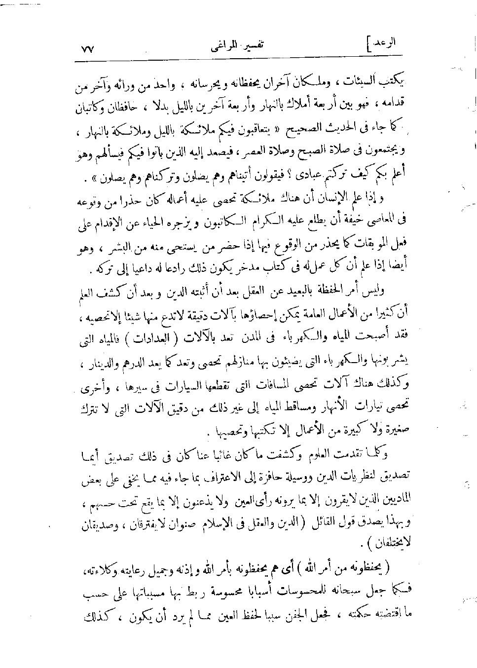 وليس أمر الحفظة بالبعيد عن العقل بعد أن أثبته الدين وبعد أن كشف العلم أن كثيرا من الأعمال العامة يمكن إحصاؤها بآلات دقيقة لا تدع منها شيئا إلا تحصيه، فقد أصبحت المياه والكهرباء فى المدن تعدّ بالآلات (العدادات) فالمياه التي يشربونها، والكهرباء التي يضيئون بها منازلهم تحصى وتعدّ كما يعدّ الدرهم والدينار، وكذلك هناك آلات تحصى المسافات التي تقطعها السيارات فى سيرها، وأخرى تحصى تيارات الأنهار ومساقط المياه إلى غير ذلك من دقيق الآلات التي لا تترك صغيرة ولا كبيرة من الأعمال إلا تكتبها وتحصيها.