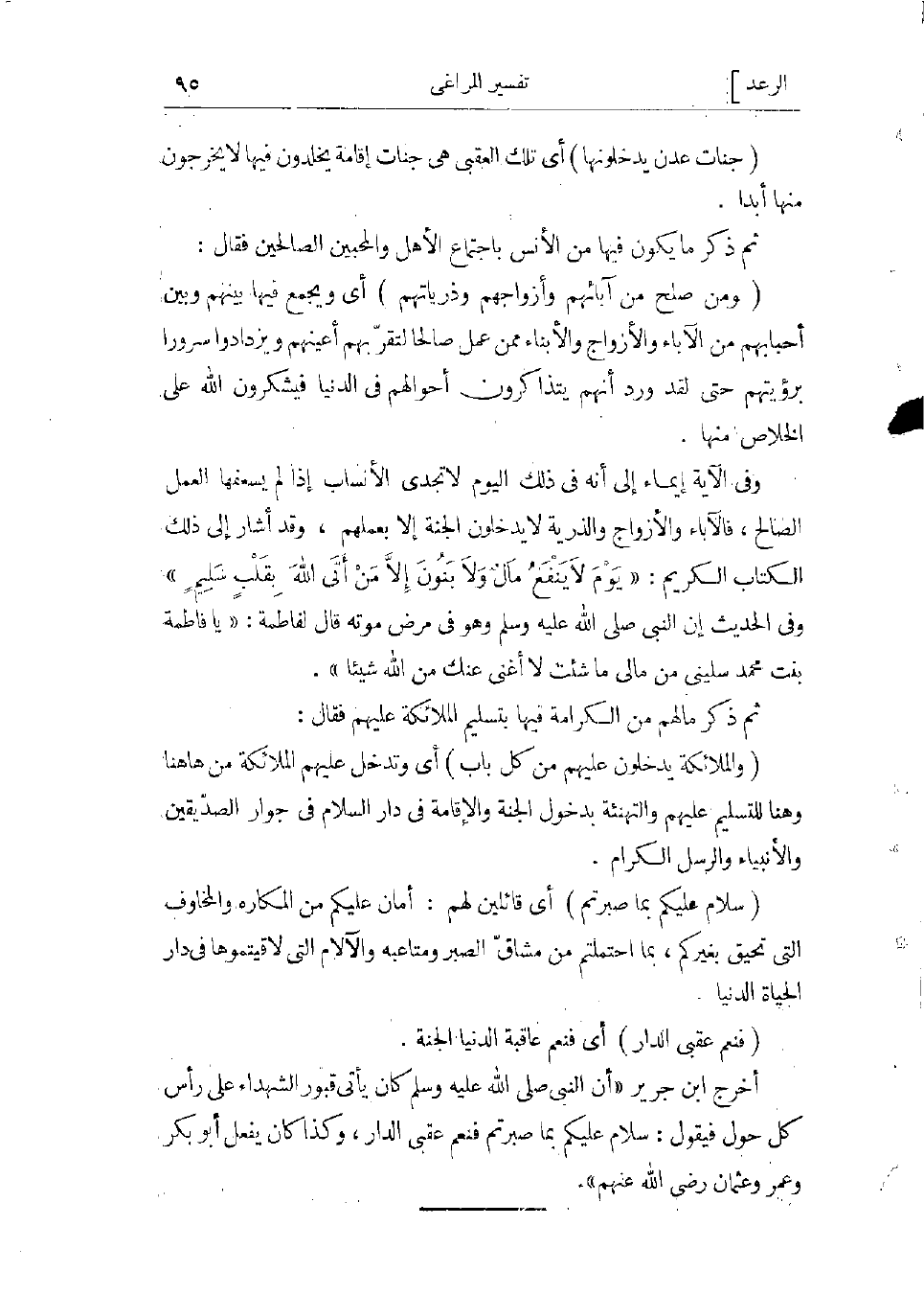 (وَالْمَلائِكَةُ يَدْخُلُونَ عَلَيْهِمْ مِنْ كُلِّ بابٍ) أي وتدخل عليهم الملائكة من هاهنا وهنا للتسليم عليهم، والتهنئة بدخول الجنة، والإقامة فى دار السلام، فى جوار الصدّيقين والأنبياء والرسل الكرام.