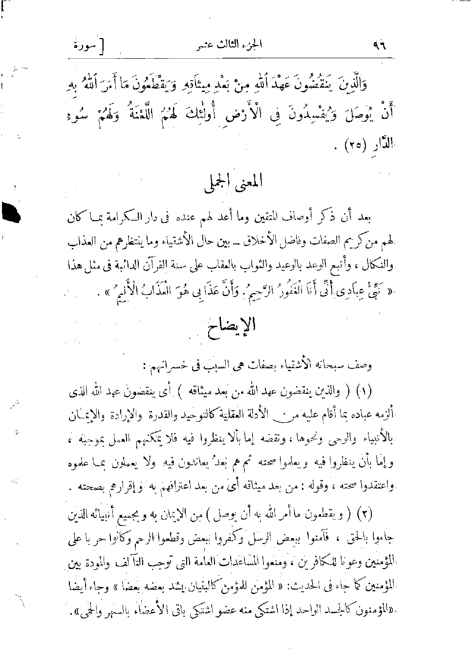 (1) (وَالَّذِينَ يَنْقُضُونَ عَهْدَ اللَّهِ مِنْ بَعْدِ مِيثاقِهِ) أي والذين ينقضون عهد الله الذي ألزمه عباده بما أقام عليه من الأدلة العقلية كالتوحيد والقدرة والإرادة والإيمان بالأنبياء والوحى ونحوها.