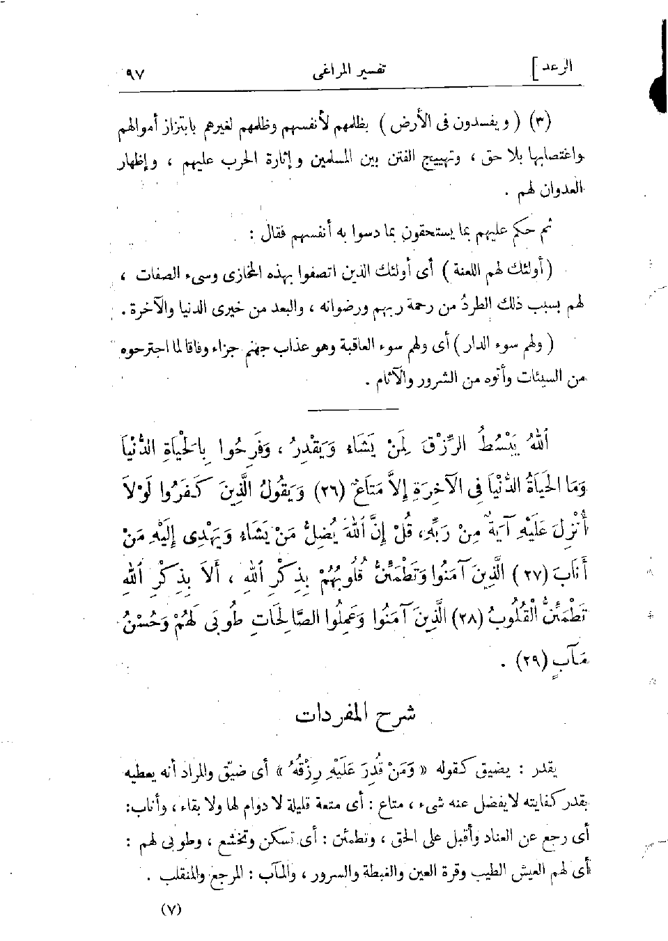 يقدر: يضيّق كقوله «وَمَنْ قُدِرَ عَلَيْهِ رِزْقُهُ» أي ضيّق، والمراد أنه يعطيه بقدر كفايته لا يفضل عنه شىء، متاع: أي متعة قليلة لا دوام لها ولا بقاء، وأناب: