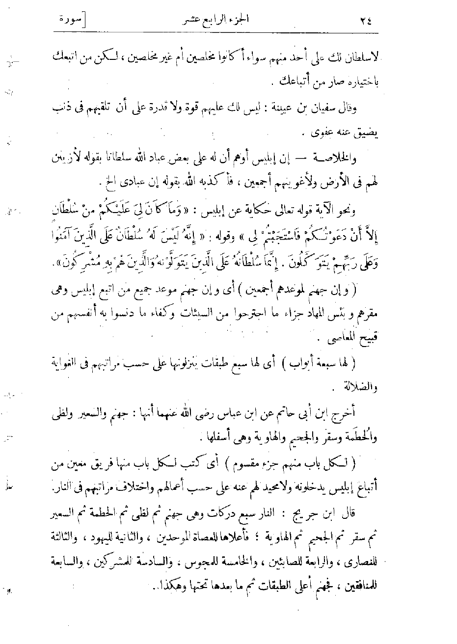 ونحو الآية قوله تعالى حكاية عن إبليس: «وَما كانَ لِي عَلَيْكُمْ مِنْ سُلْطانٍ إِلَّا أَنْ دَعَوْتُكُمْ فَاسْتَجَبْتُمْ لِي» وقوله «إِنَّهُ لَيْسَ لَهُ سُلْطانٌ عَلَى الَّذِينَ آمَنُوا وَعَلى رَبِّهِمْ يَتَوَكَّلُونَ. إِنَّما سُلْطانُهُ عَلَى الَّذِينَ يَتَوَلَّوْنَهُ وَالَّذِينَ هُمْ بِهِ مُشْرِكُونَ» .