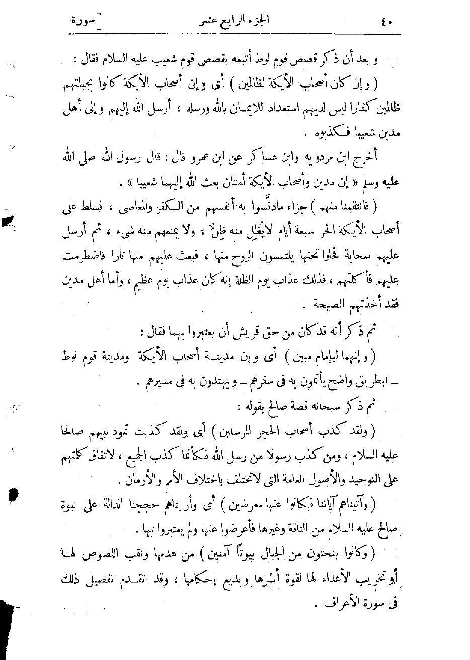 أخرج ابن مردويه وابن عساكر عن ابن عمرو قال: قال رسول الله صلى الله عليه وسلّم «إن مدين وأصحاب الأيكة أمتان بعث الله إليهما شعيبا» .
